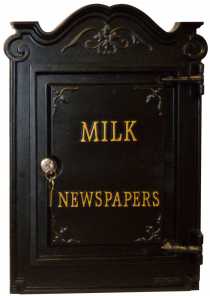 The Churchill period style parcel box made in Britain, solid cast iron front and back door with locks and keys. available personalised with wording numbers and motifs of your choice, handcrafted by Robin Lumley at Lumley designs Wolverhampton West Midlands.
